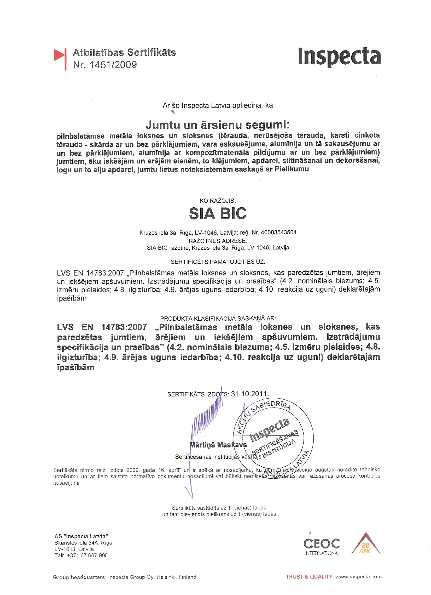 - Ārējām palodzēm ir kvalitātes un atbilstības sertifikāts.
