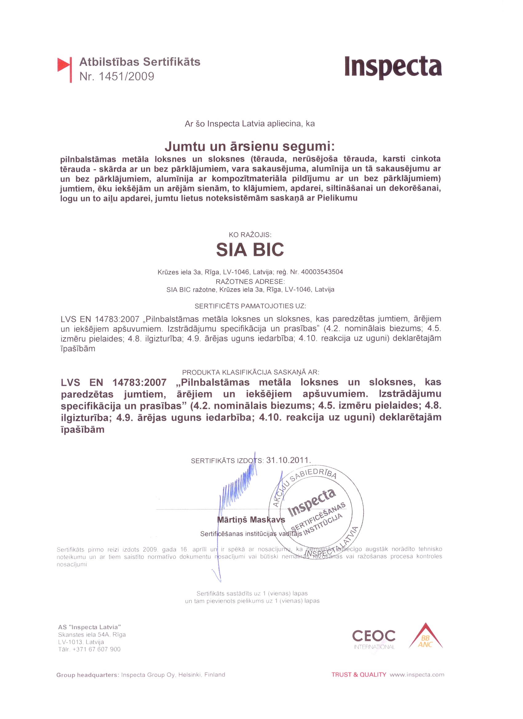Valcprofila jumtu segumiem Art.Nr:BIC 303